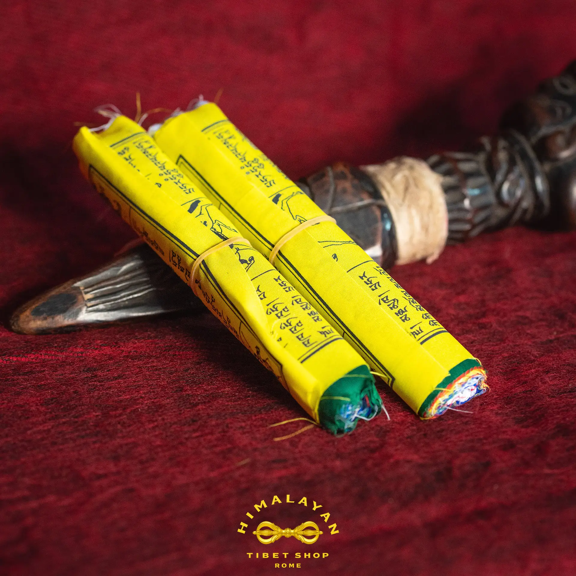 Le bandiere di preghiera tibetane Lung-ta sono tradizionali bandierine di stoffa colorata utilizzate per diffondere pace, protezione e buona fortuna. Decorate con mantra sacri, il Cavallo del Vento e i simboli del Buddhismo tibetano, vengono appese all’esterno affinché il vento porti le benedizioni in tutte le direzioni.