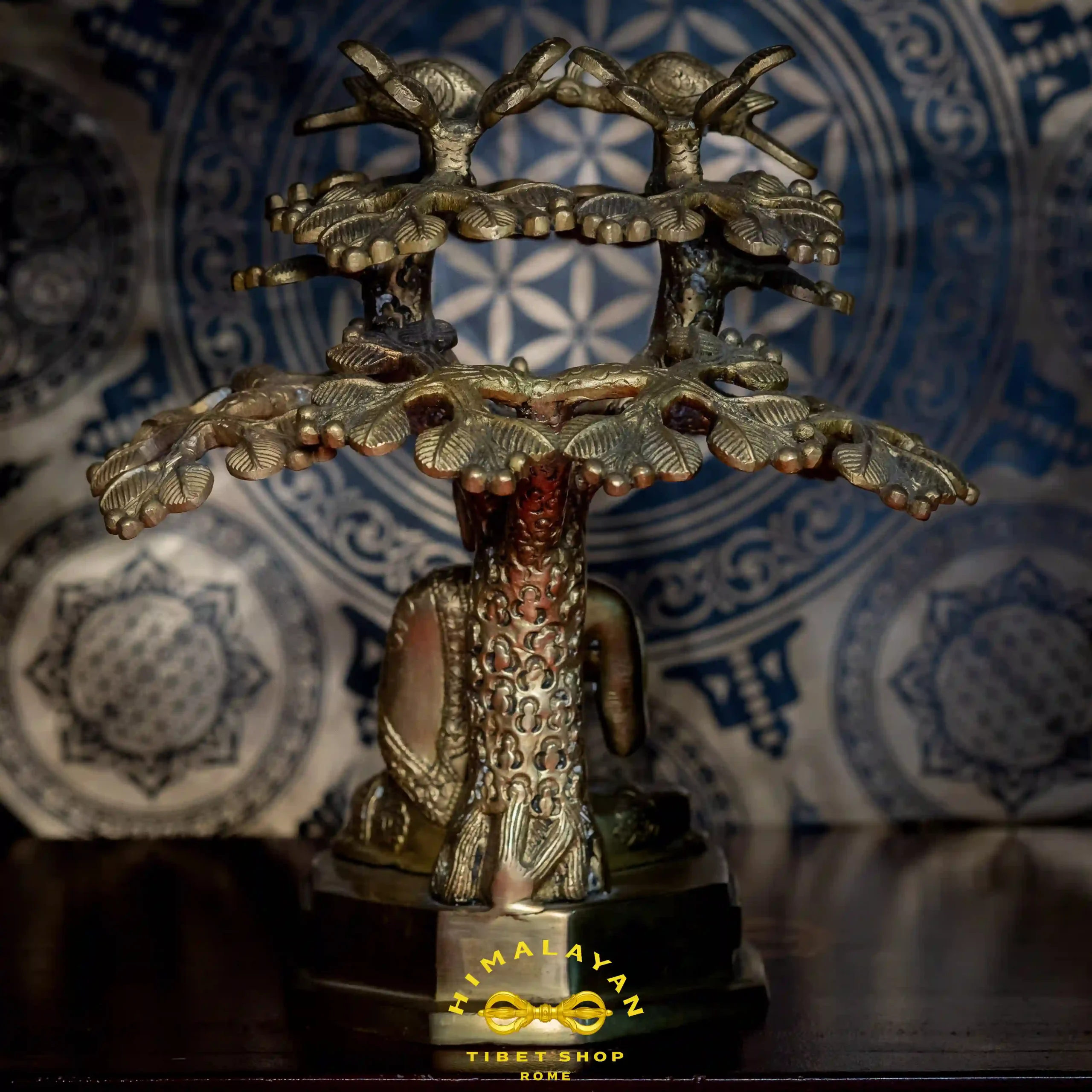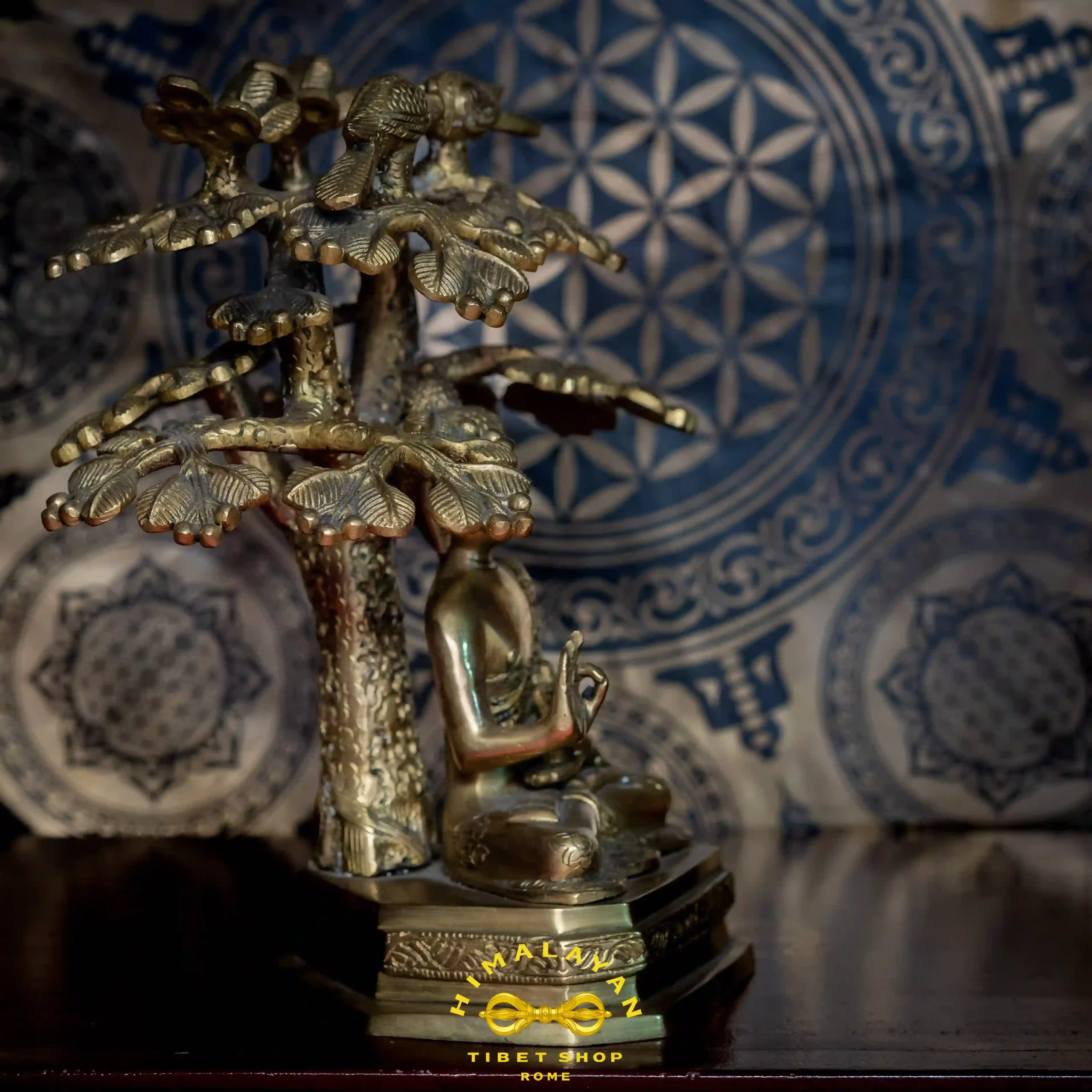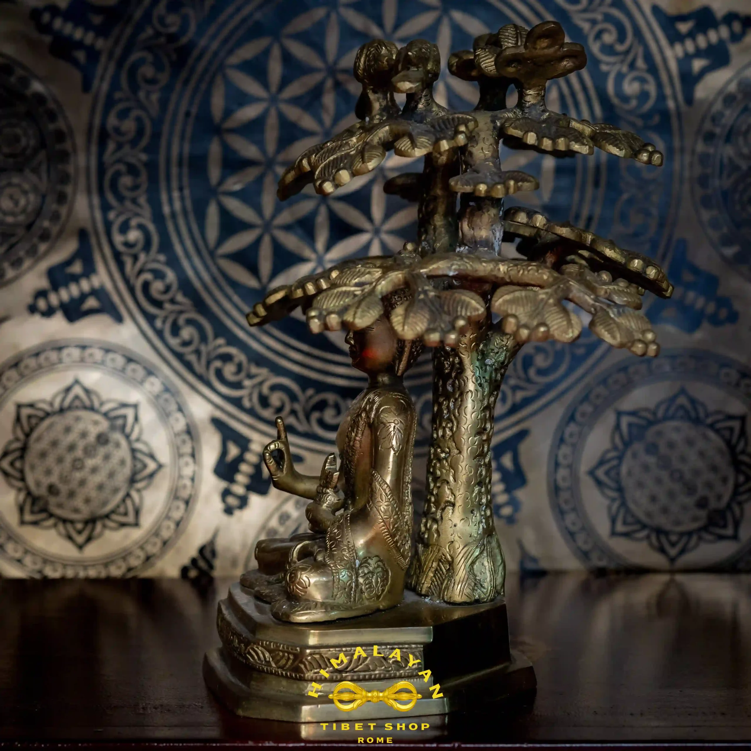 Statua di Buddha Siddhartha Gautama sotto l’Albero della Bodhi, simbolo dell’illuminazione e della vittoria sull’ignoranza. Rappresenta la serenità e la saggezza raggiunte nella meditazione profonda.