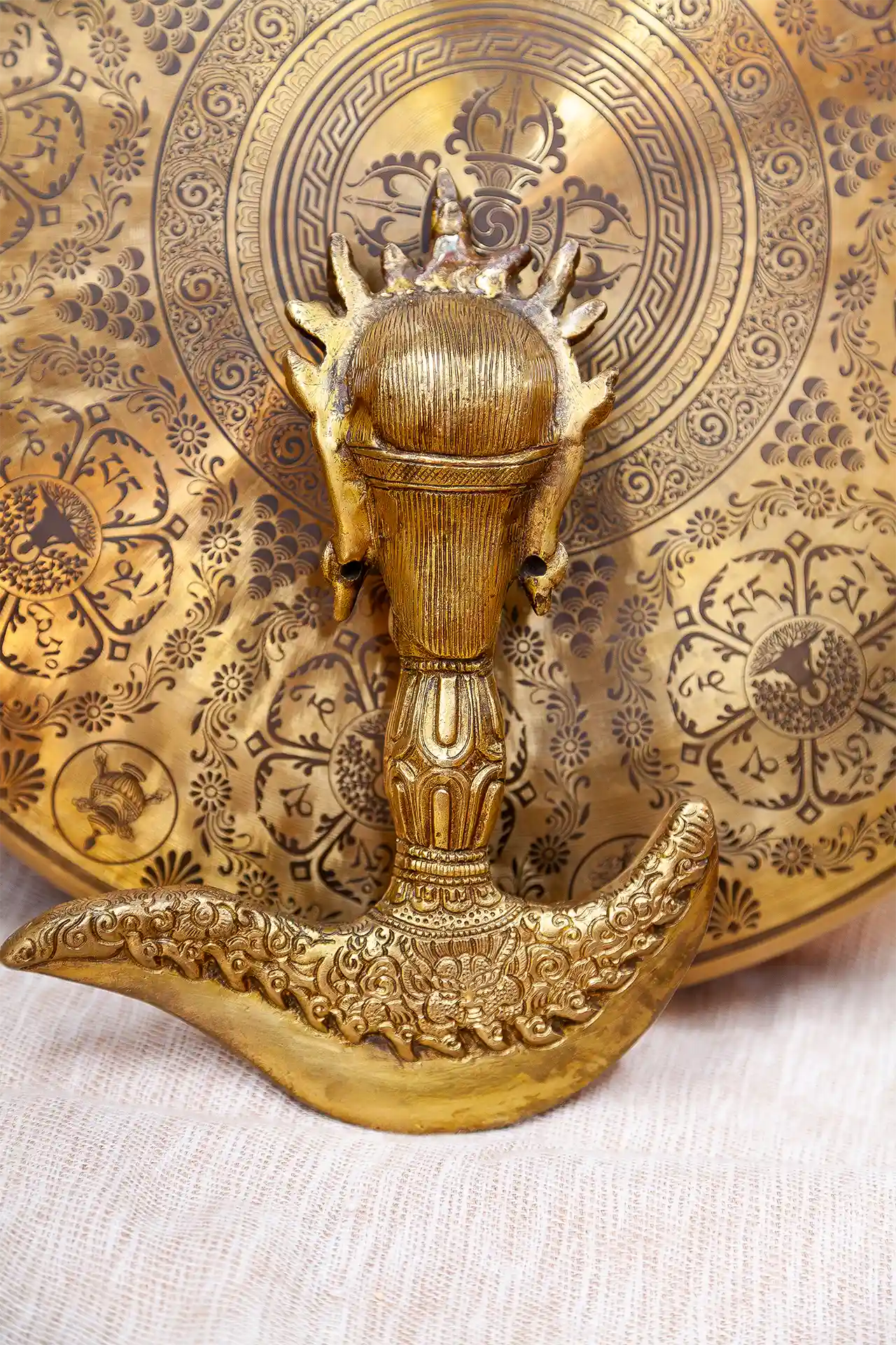 Realizzata in ottone raro, questa Kartika unisce valore rituale, artistico e simbolico. Come tutti gli oggetti rituali tibetani, la sua funzione può variare in base alla composizione del materiale, ma l’ottone è tradizionalmente associato a stabilità, protezione e durata nel tempo.