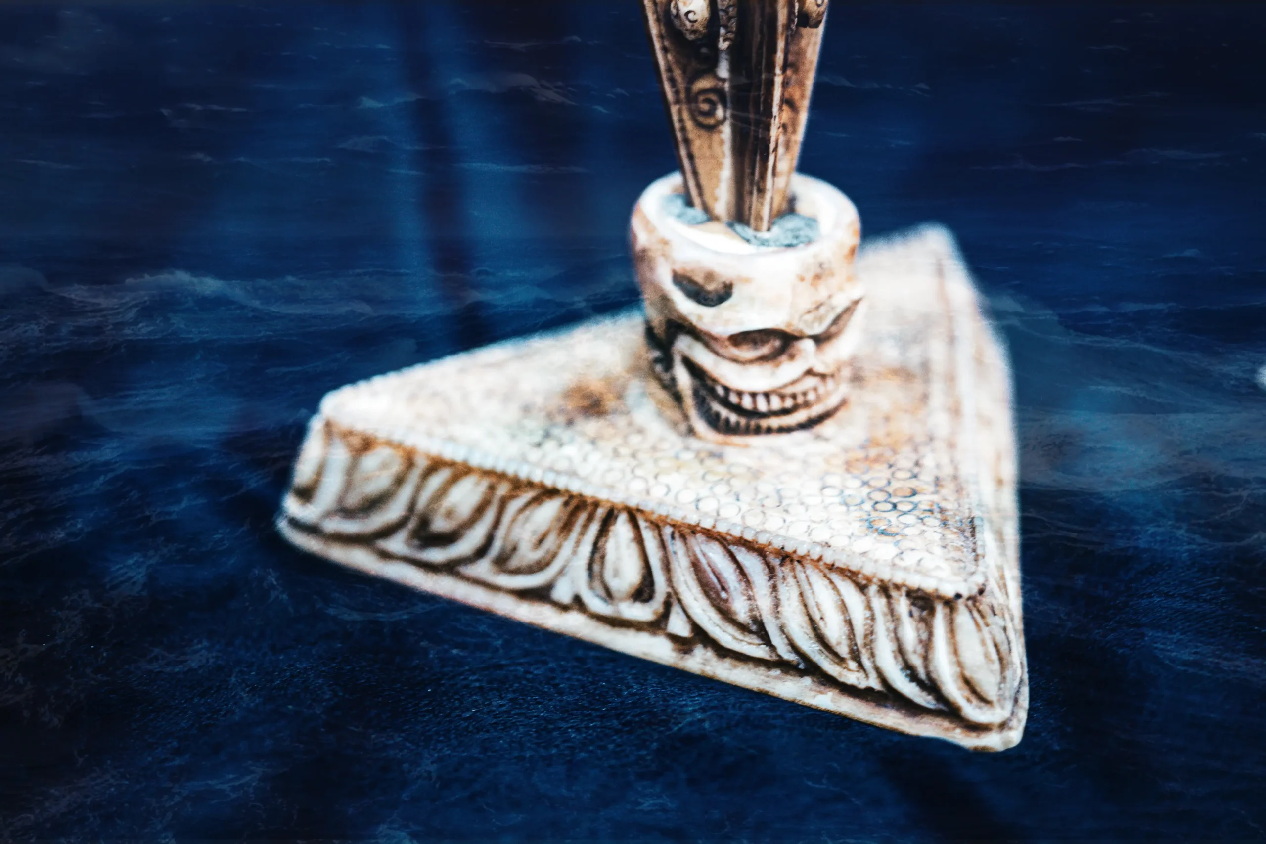 Raro Phurba in Osso di Yak con Mahakala, potente pugnale rituale del Buddhismo Tibetano. Oggetto sacro di protezione e trasformazione spirituale, utilizzato nelle pratiche tantriche per allontanare energie negative e stabilizzare la mente.