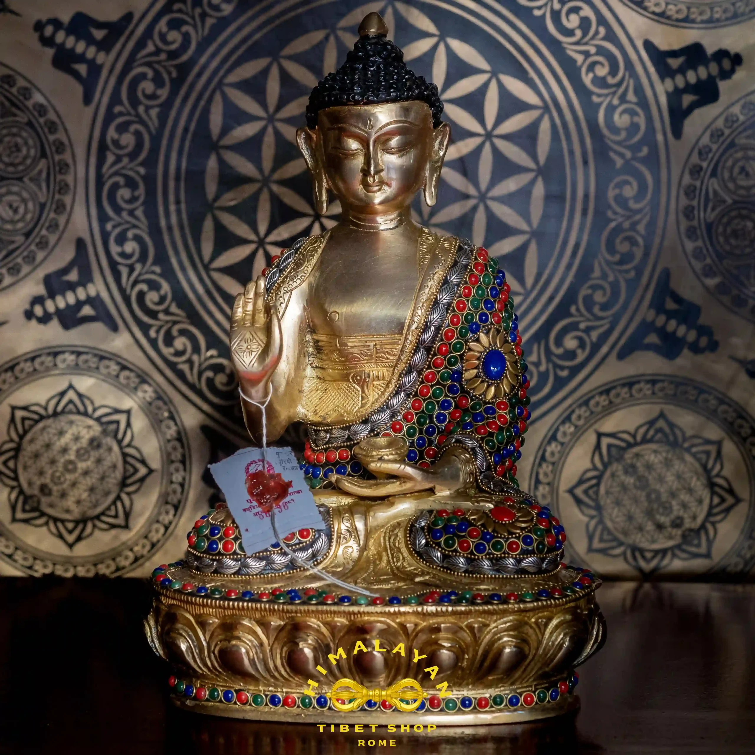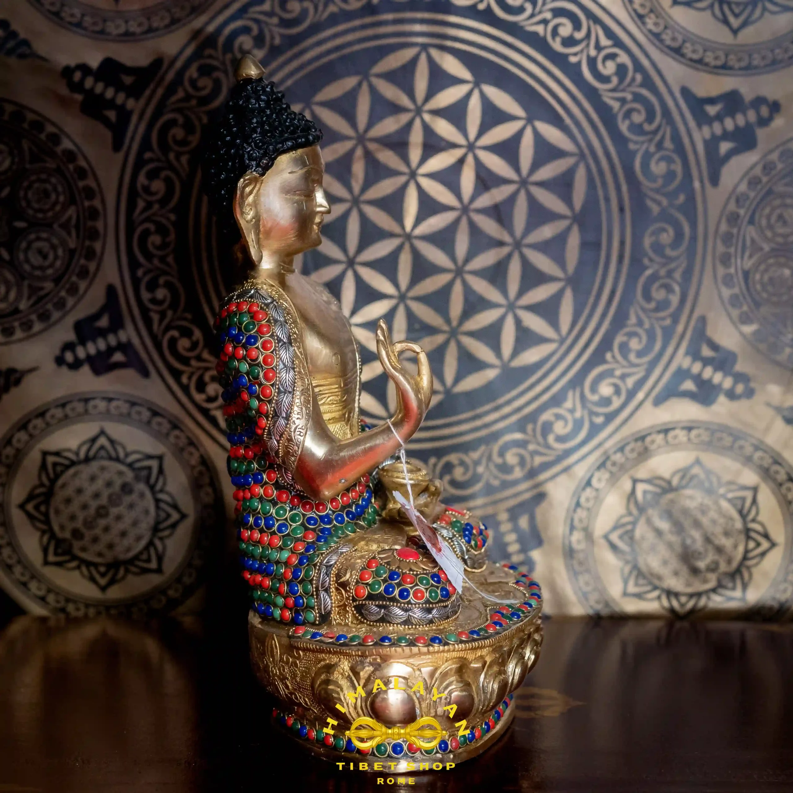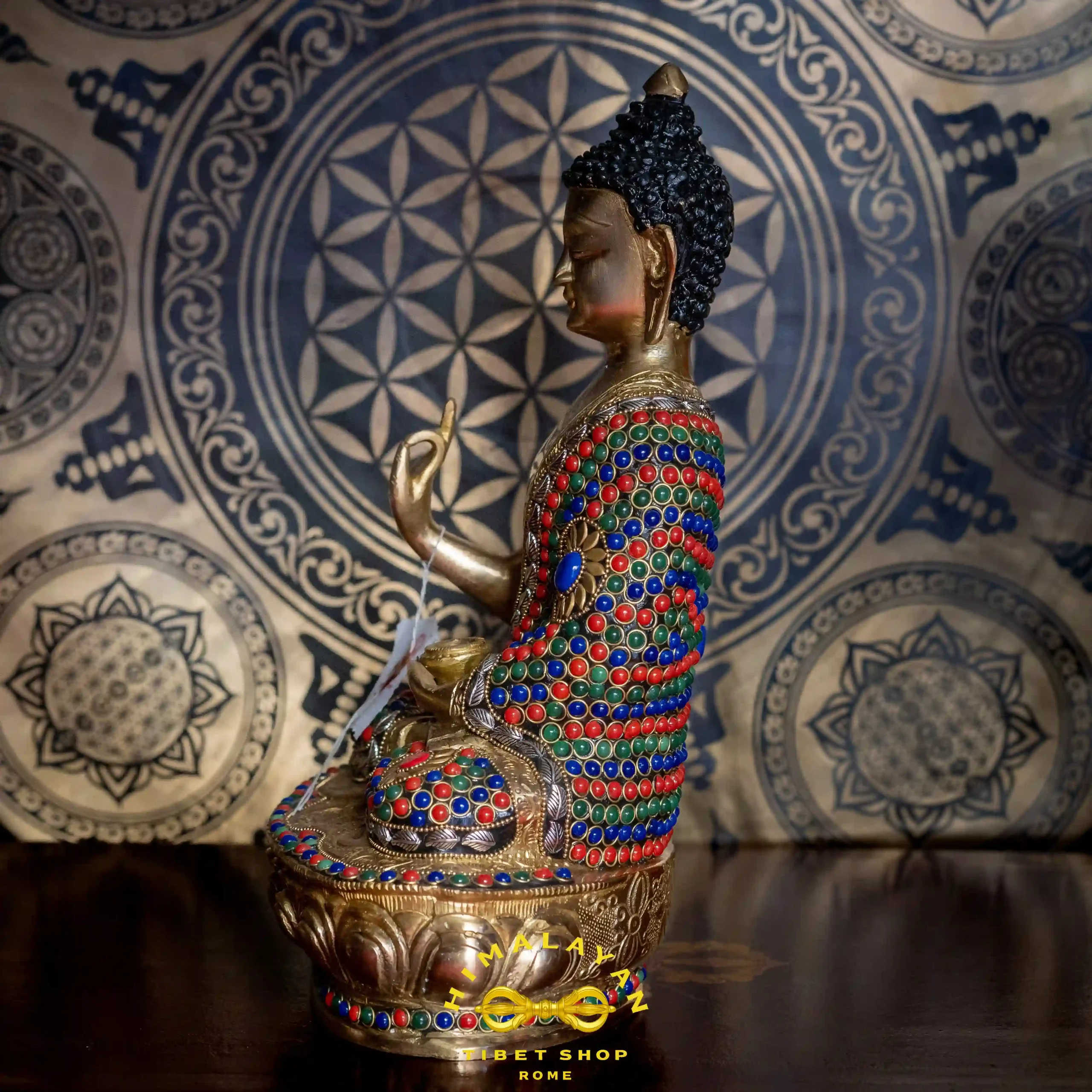 Realizzata in ottone tibetano con raffinata maestria artigianale, questa statua è un simbolo di serenità, centratura e profonda consapevolezza. Perfetta per la casa, lo spazio di meditazione o come dono spirituale.